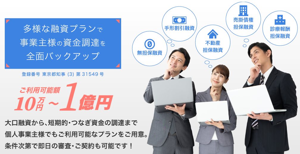 三社間(3%~10%) 二社間(10%~20%) 資金化成功率93% |